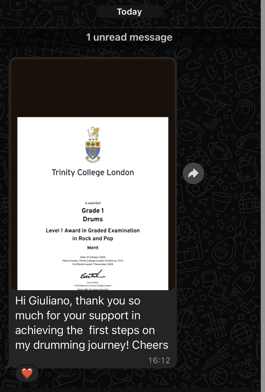 With over 20 years of experience teaching Rock & Pop drumming — including graded exam coaching — and a degree in drums, I’ve built a system that gives you what traditional lessons and YouTube can’t:
